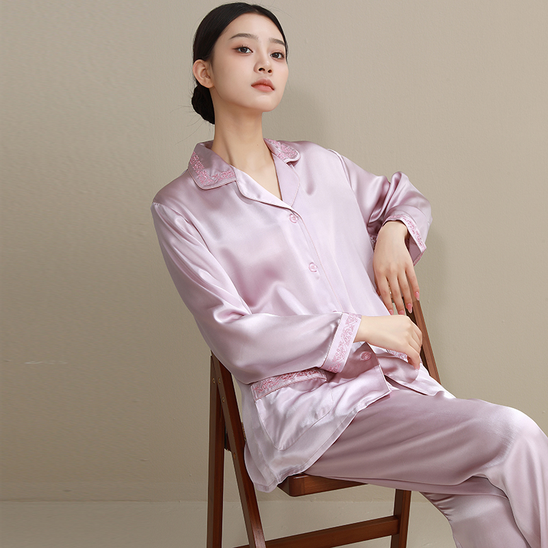 杭州丝绸两件套家居服 青年长袖 2025新款 100%桑蚕丝睡衣女翻领冬季