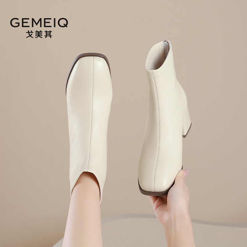 小踝靴加绒马丁靴女款 戈美其粗跟短靴瘦瘦靴女2025新款 法式 季 春季