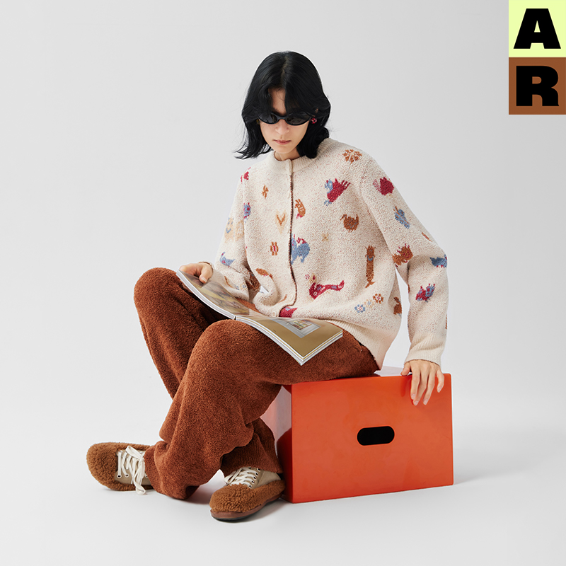 外套保暖冬可外穿AlmondRocks 开衫 AR新中式 织锦半边绒家居服套装