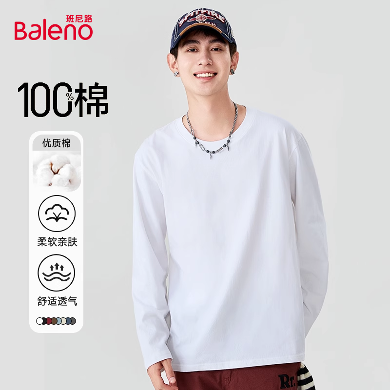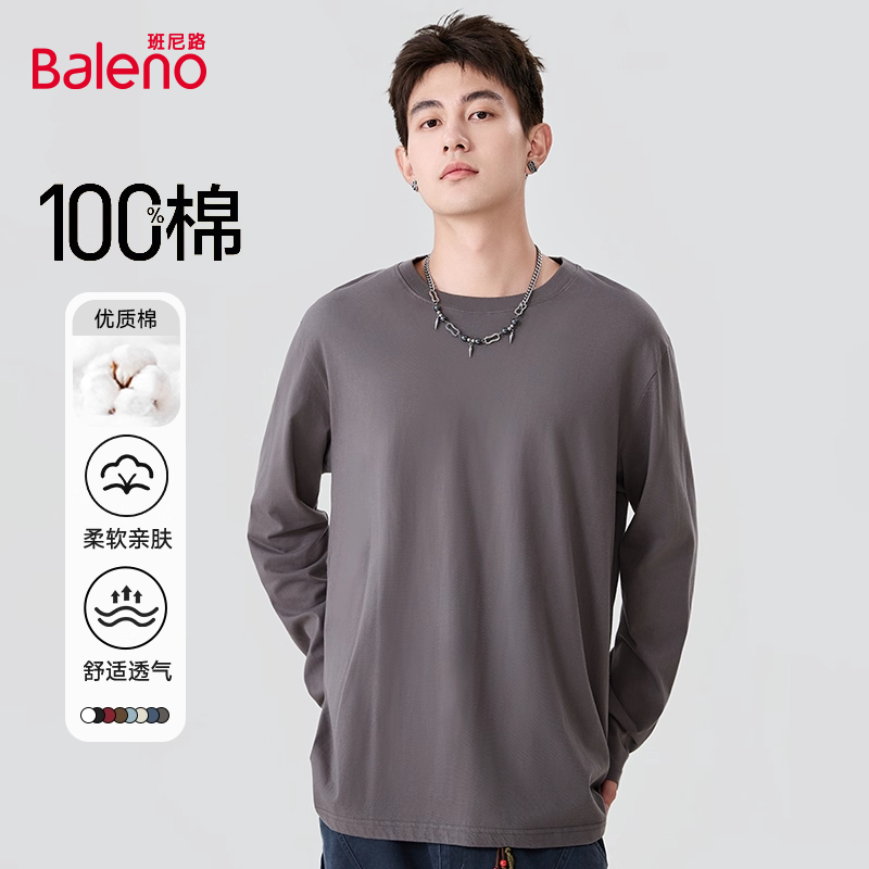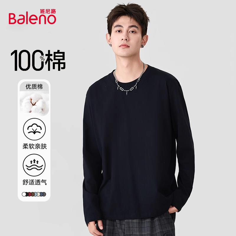 柔软亲肤cleanfit套头打底衫 2025秋季 t恤男款 班尼路重磅纯棉长袖