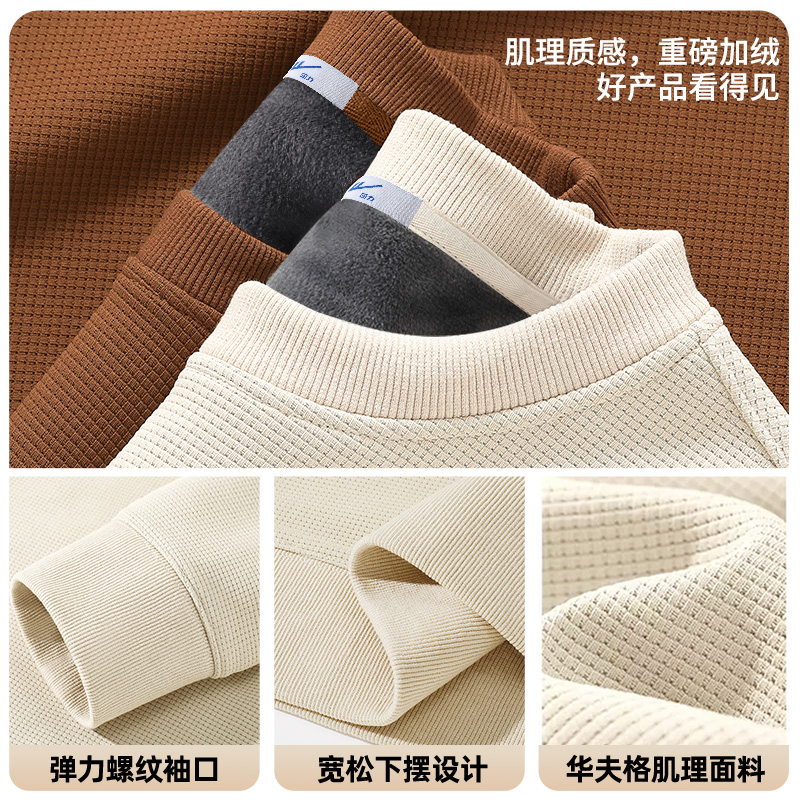 青少年秋冬套装 回力黑色两件套男士 华夫格圆领卫衣加绒加厚卫裤
