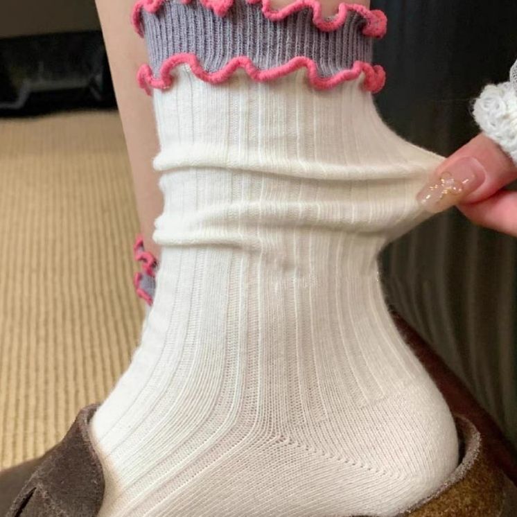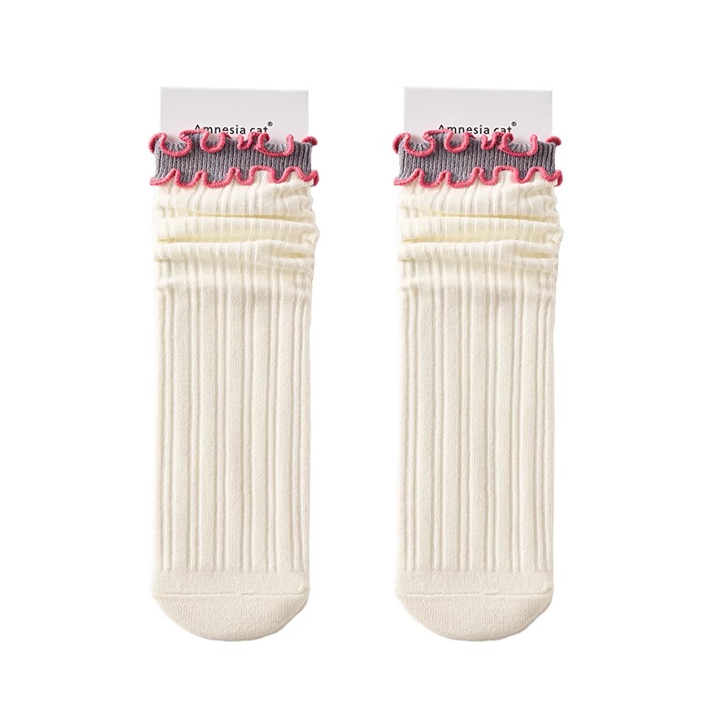 爆款 2025新款 春秋中筒袜无骨月子袜白色堆堆袜搭配小皮鞋 袜子女款