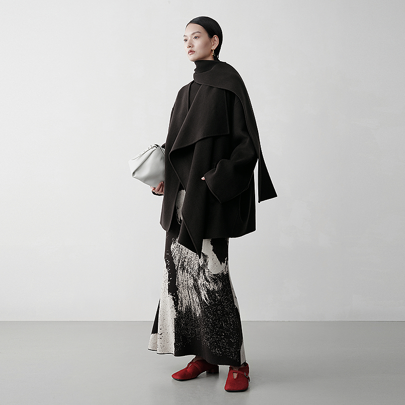 新款 2025冬季 秋水伊人优雅翻领毛呢外套 通勤大衣 100%绵羊毛