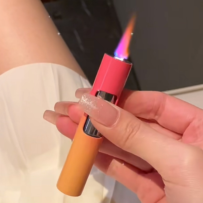网红ins圆柱便携小巧粉焰充气打火机防风直冲个性 渐变送男友闺蜜