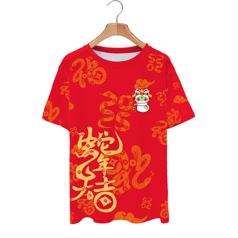 男女无感印花半袖 2025蛇年大吉过新年春节喜庆国潮速干短袖 t恤衫