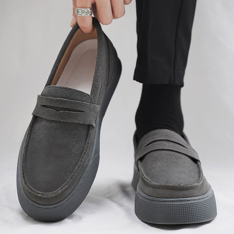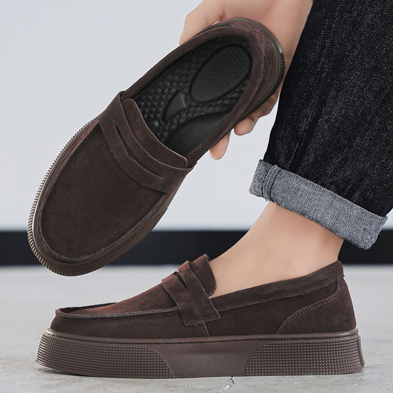 轻便运动开车潮鞋 豆豆鞋 增高男士 秋冬透气休闲一脚蹬厚底板鞋 男款