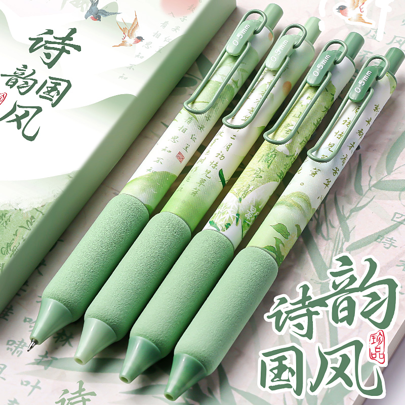中国风兰亭集序按动中性笔高颜值ST头速干刷题笔学生考试专用0.5黑笔古风复古女生签字笔软握手感好碳素水笔