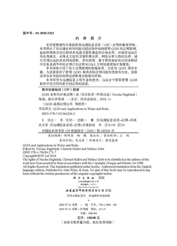 第四册 地理信息管理系统 GIS 社 QGIS水利和灾害应用 科学出版 9787030662262书籍KX 书
