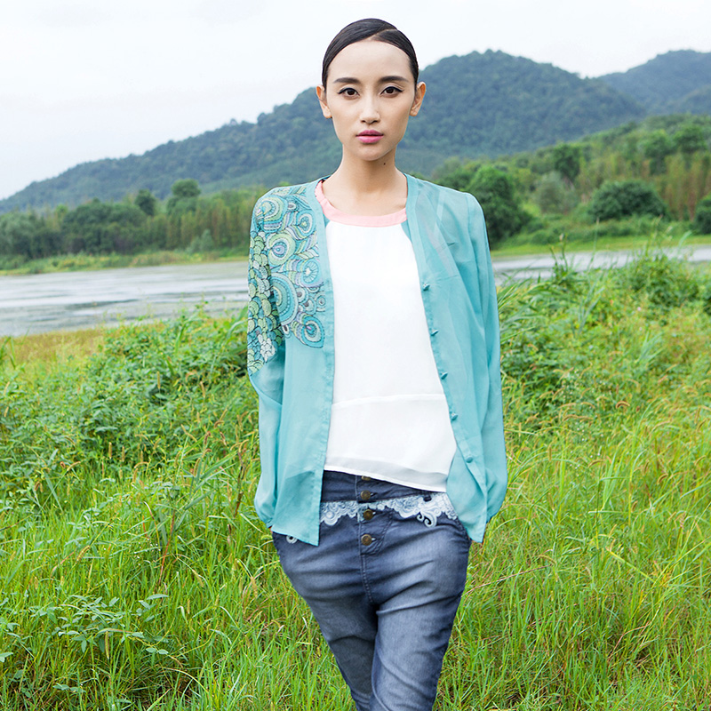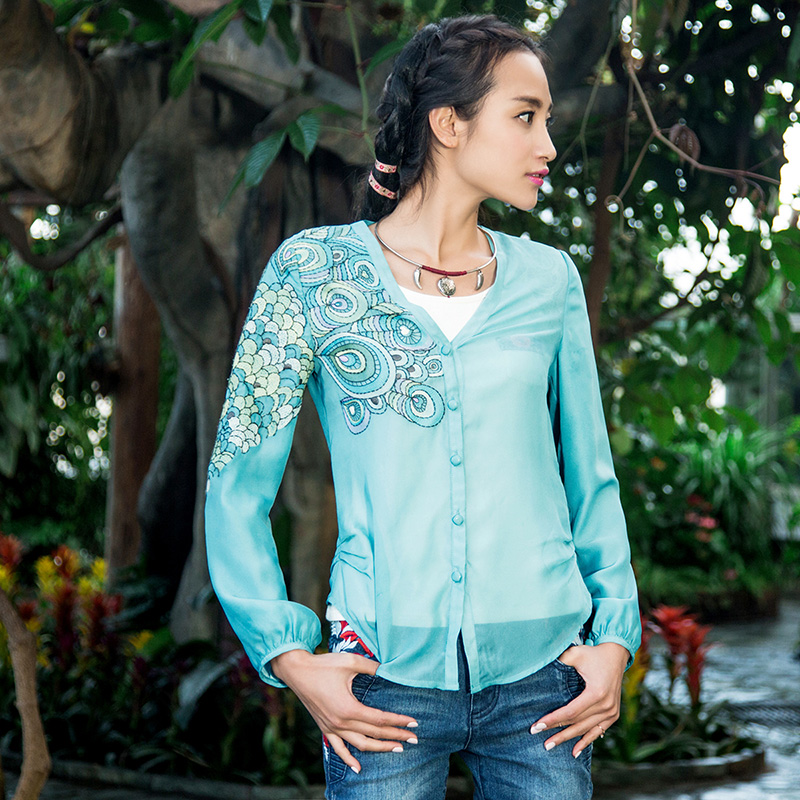 女长袖 小衫 夏季 上衣泡泡袖 2025新宽松设计感V领法式 蕾丝刺绣衬衫