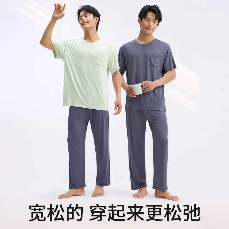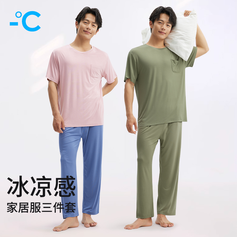 家居服冰丝宽松可外穿长裤 短裤 空调服 睡衣3件套男莫代尔短袖 夏季