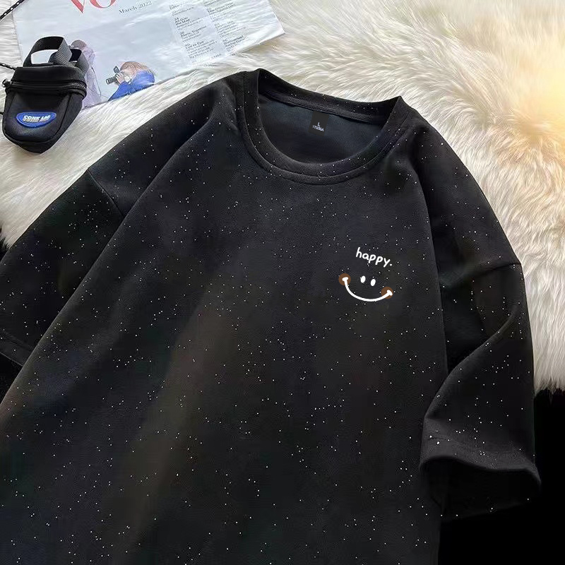 男装 休闲情侣宽松半截袖 重磅纯棉满天星短袖 夏季 T恤男士 300斤大码