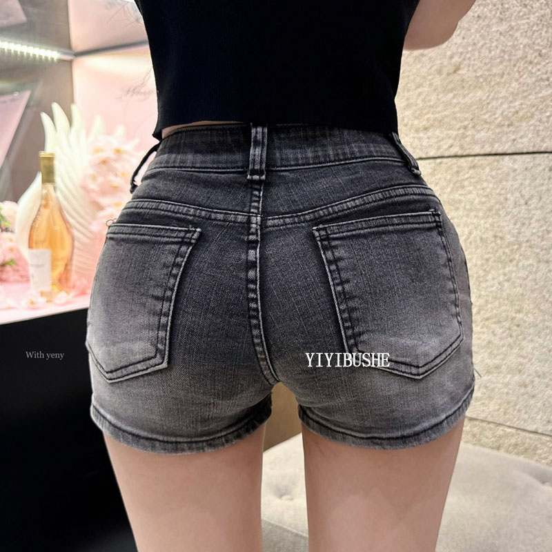 性感显瘦弹力低腰牛仔短裤 韩国代购 LA508做旧黑青色 自留 正品