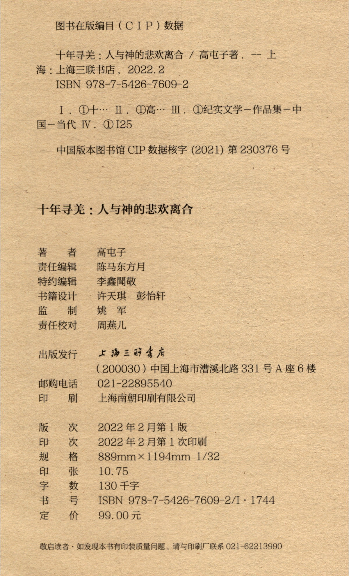 人与神 上海三联 悲欢离合 著 高屯子 十年寻羌
