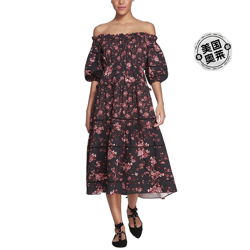 XZY 微胖纯欲辣妹一字肩黑色连衣裙女25年夏性感收腰蝴蝶结蓬蓬裙