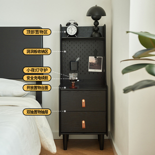 实木床头柜黑色小型床边柜子窄款 多功能加高储物柜卧室床头收纳柜