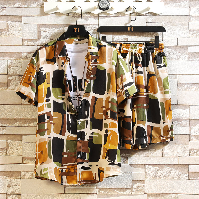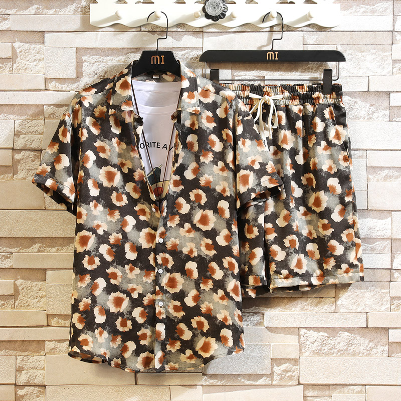免搭配一套男士 短裤 美式 新款 痞帅两件套 青少年潮牌短袖 夏装 花衬衫