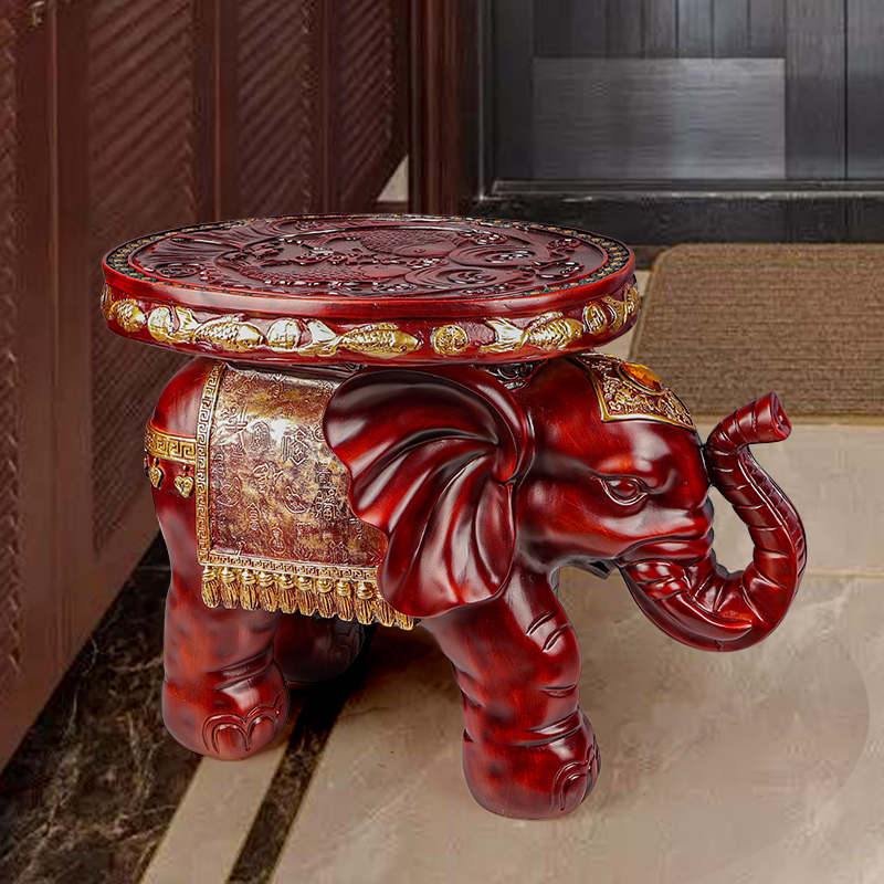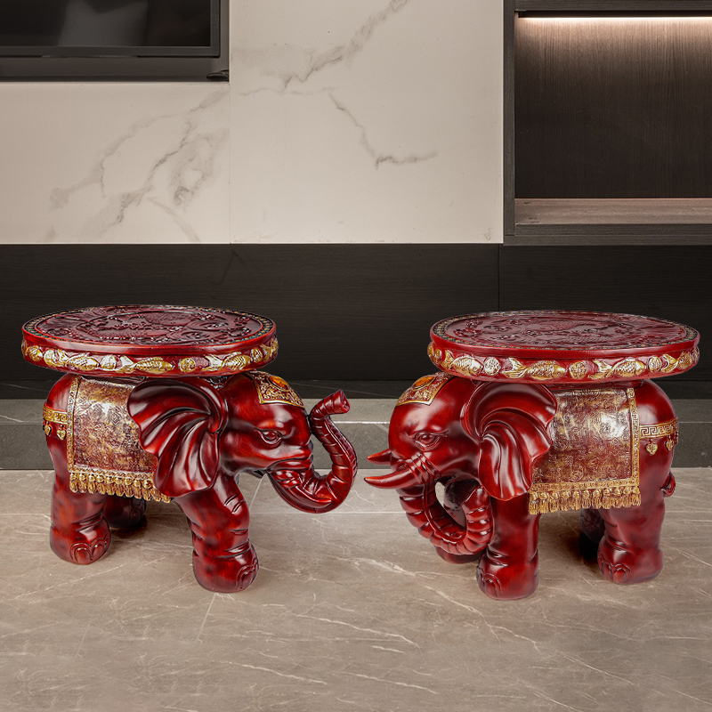 饰花盆架摆件创意乔迁开业礼品 凳家居装 树脂仿木中式 招财大象换鞋