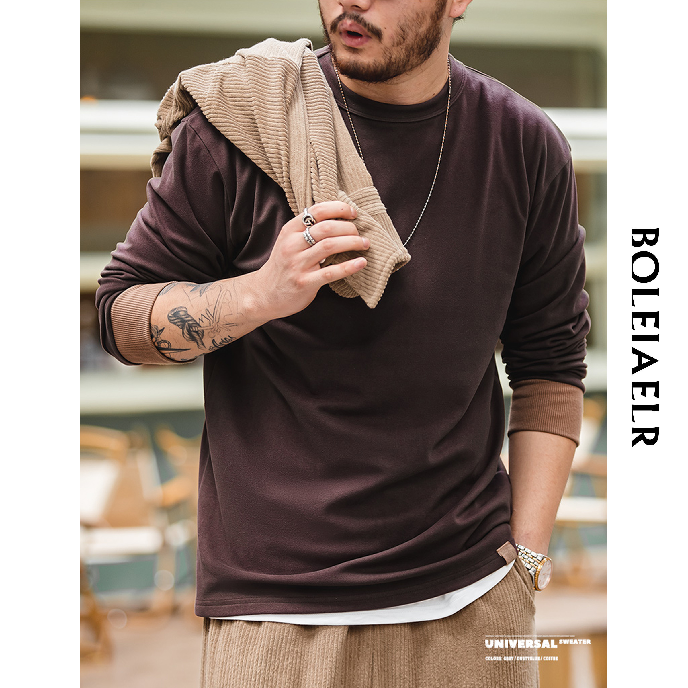 秋冬加绒潮牌无帽长袖 字母设计感美式 重磅圆领卫衣男款 2025新款