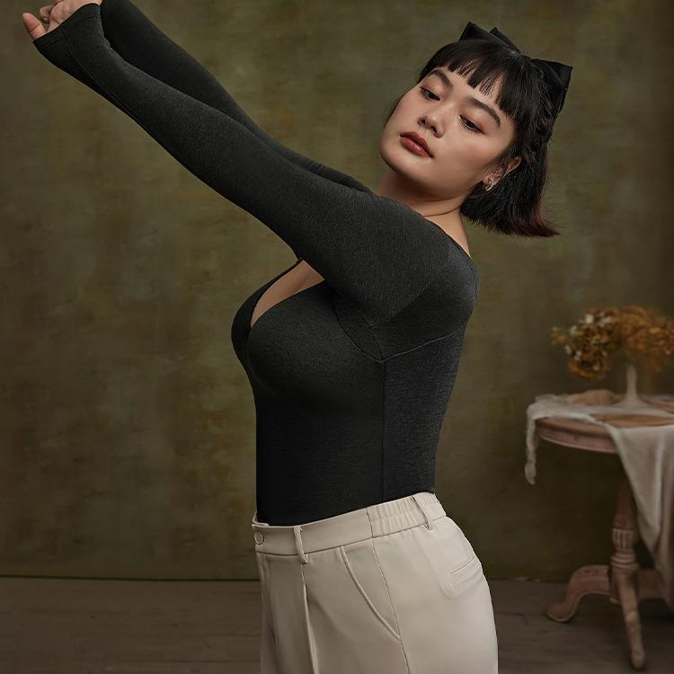 草本初色保暖上衣内搭打底女士秋冬长袖 带胸垫可外穿肌底衣打底衫