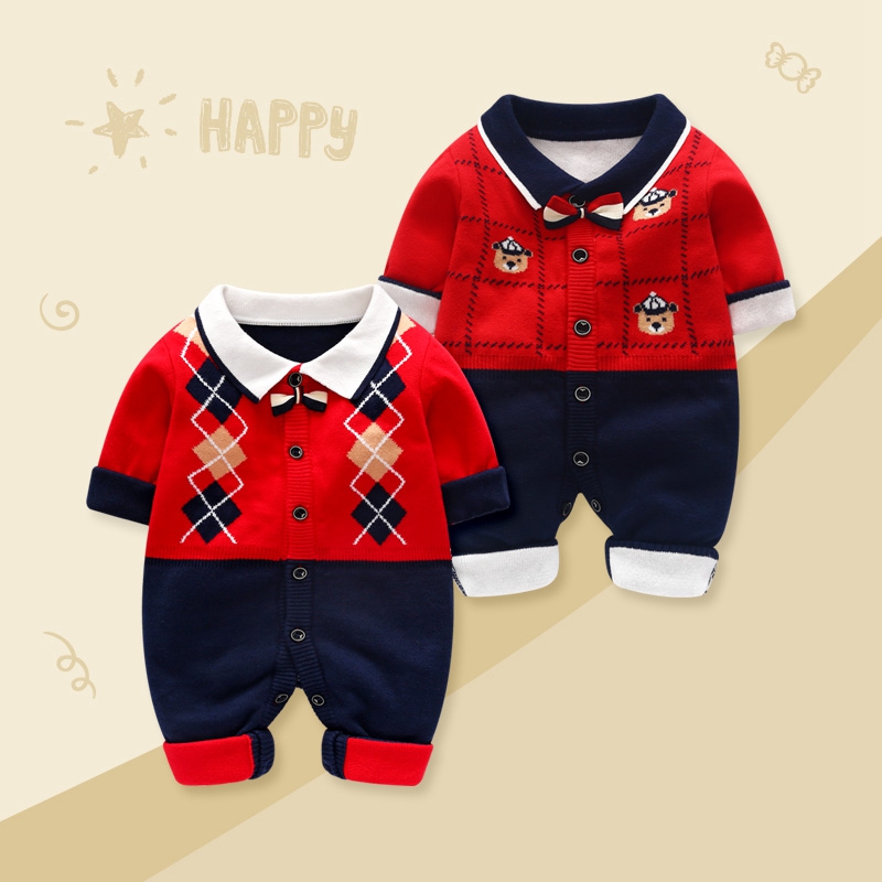 婴儿连体衣冬装 拜年服 衣服满月百天哈衣新生男宝宝加绒加厚新年装
