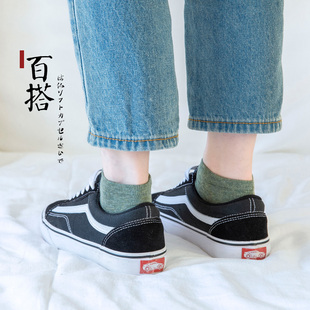袜子女短袜纯棉浅口船袜春秋季 中筒ins潮纯色低帮黑色全棉不掉跟