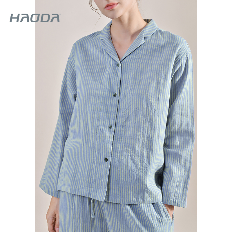 裸感高级感可外穿 女士家居服套装 昊达睡衣男春夏款 纯棉双层纱长袖