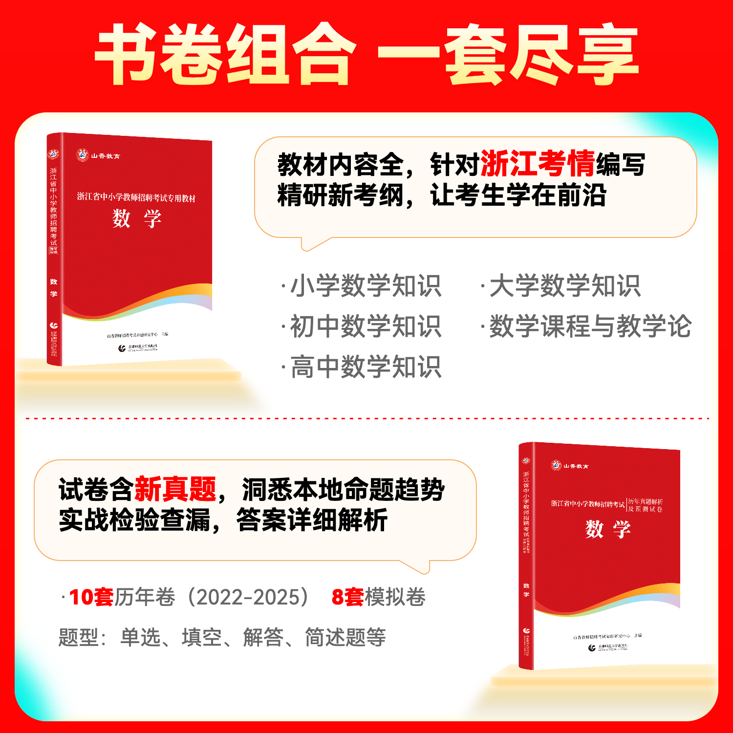 2026年山香招教 浙江省中小学教师招聘考试教材历年真题试卷练习题资中学小学教师编制招教杭州宁波温州绍兴台州金华 学科数学