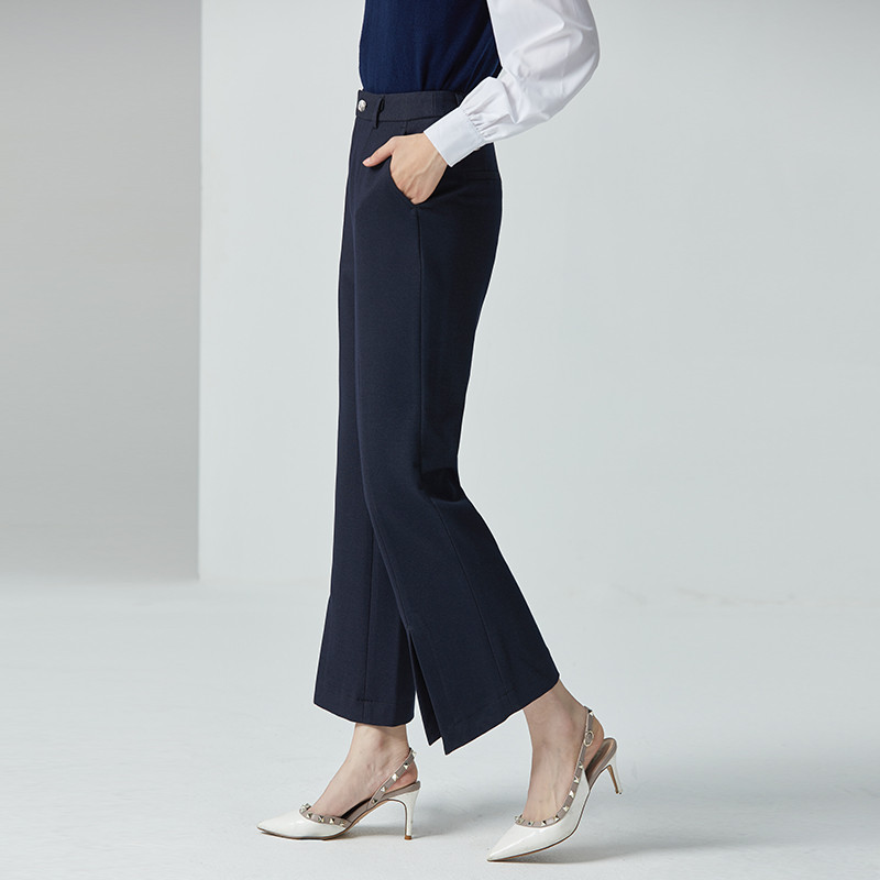女2024年春夏新款 休闲裤 高腰显瘦女裤 气质修身 九分开叉 时尚 微喇裤
