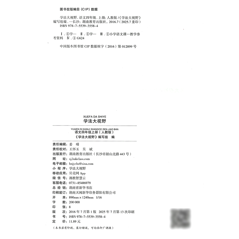 同步练 2025新版 社全新正版 RJ语文教科书配套学习用书湖南教育出版 综合练含答案4上语文 学法大视野语文4四年级上册人教版