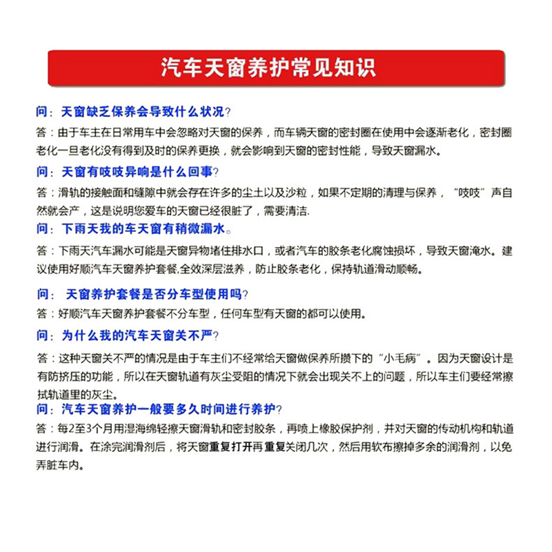 汽车天窗专用养护套装 轨道清洗润滑脂消除异响密封胶条橡胶保养剂