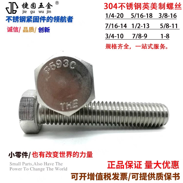 13加长螺杆 英制外六角全牙3 8螺丝螺栓304不锈钢美制螺钉大全1