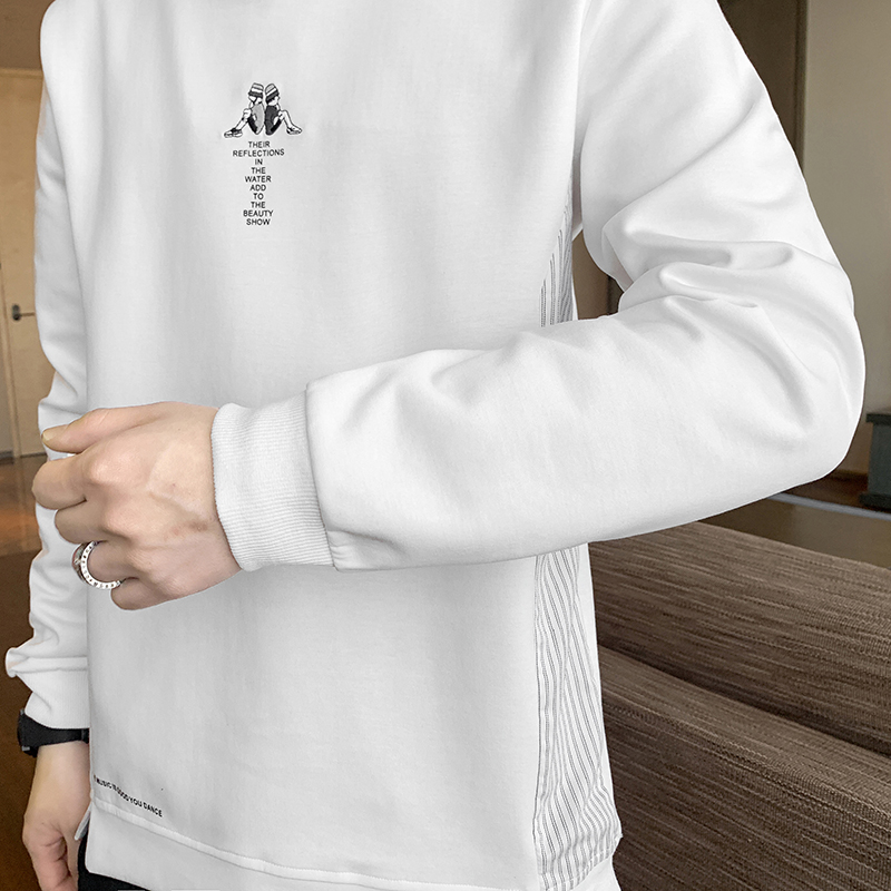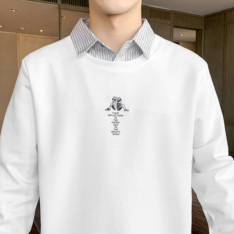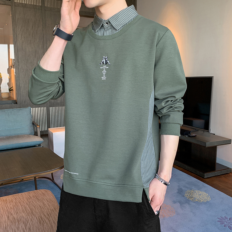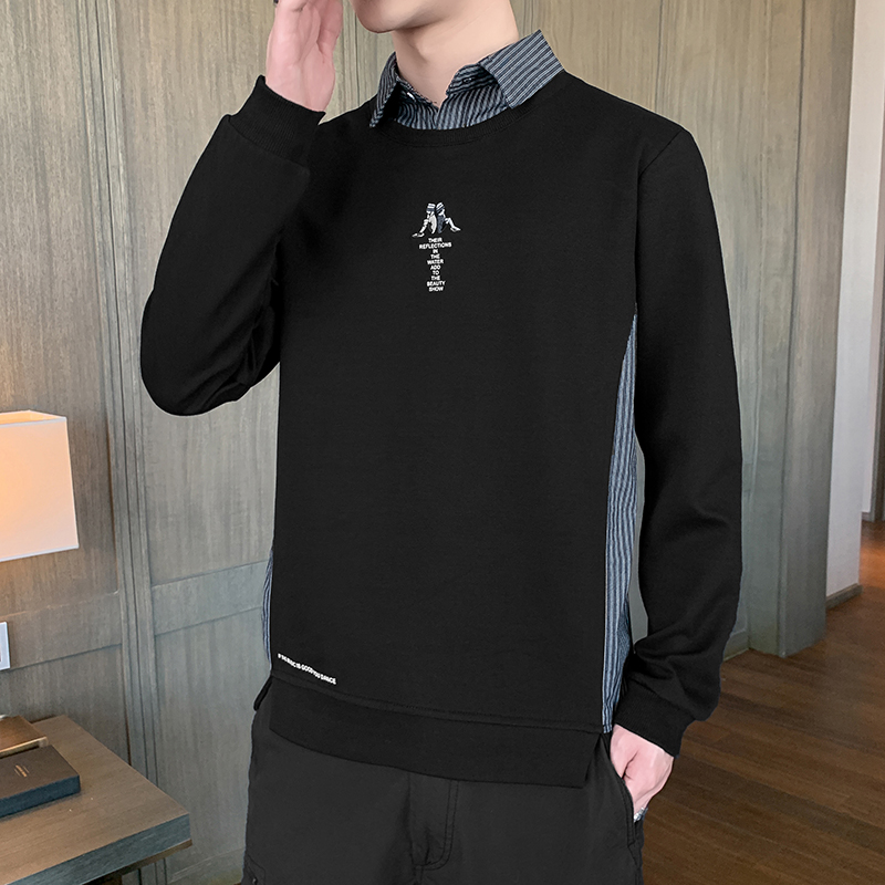 春秋季 上衣潮牌ins长袖 新款 领秋装 t恤 潮流宽松衬衫 假两件卫衣男士