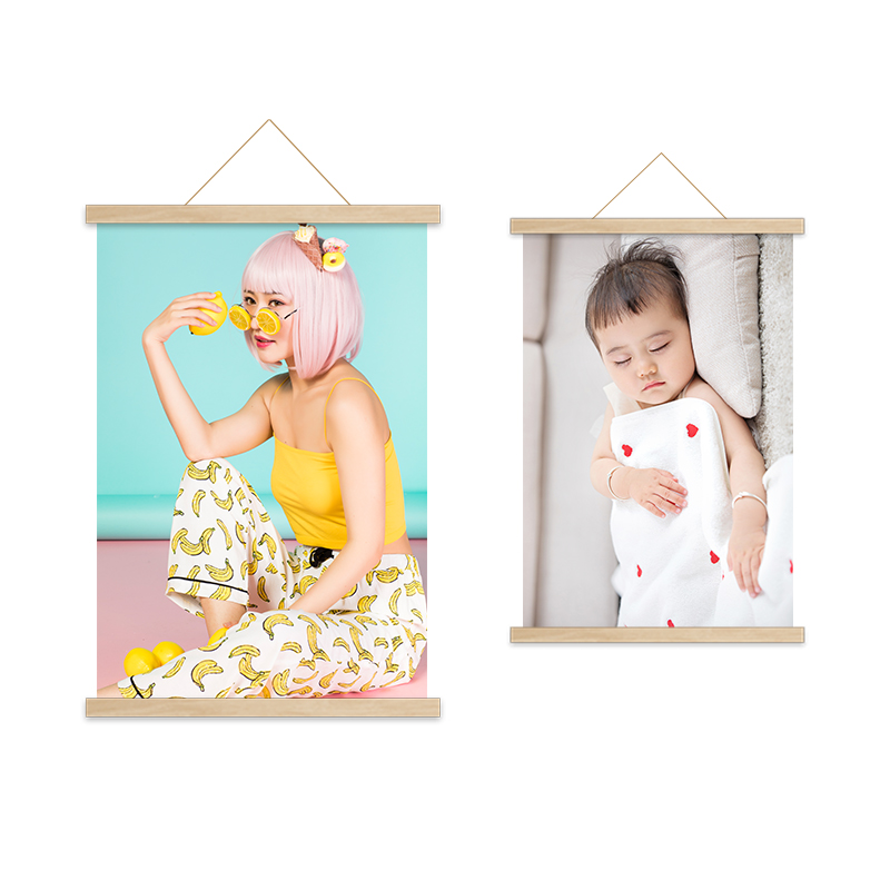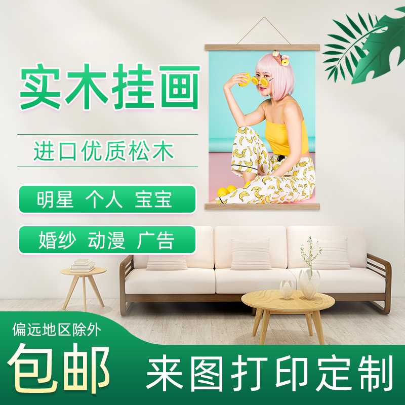海报定制挂画实木挂轴卷轴油画布打印影楼个人写真照片装 饰画制作