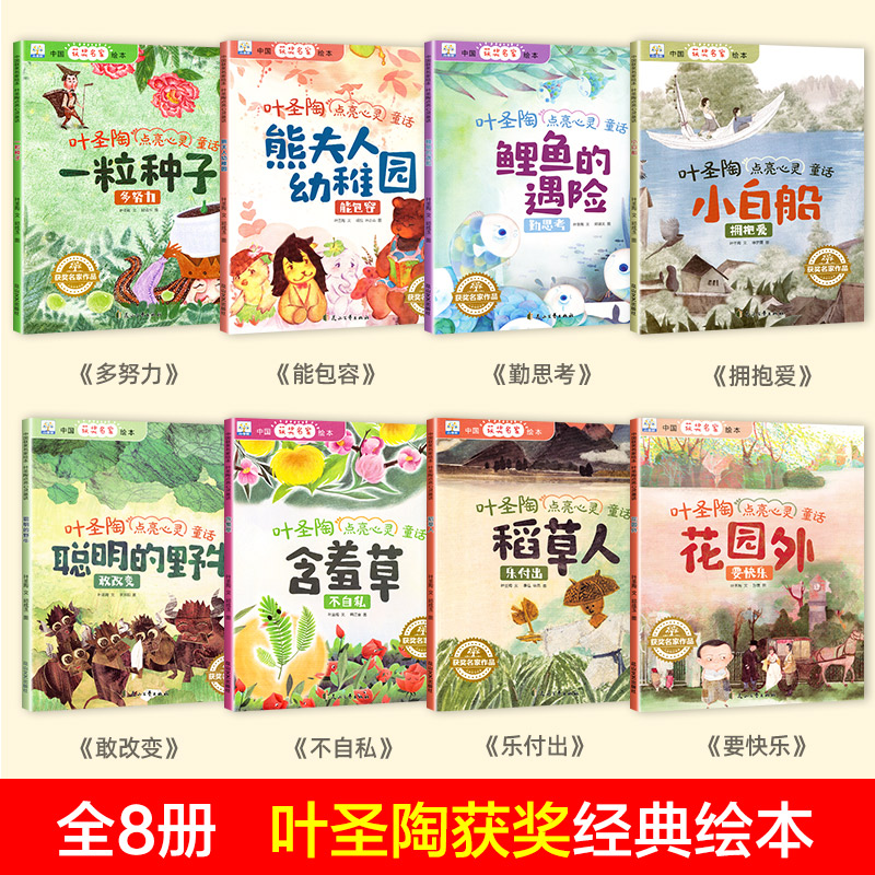 2到3 5一6岁 书籍读物一年级课外书阅读二年级稻草人 中国名家获奖绘本8册 幼儿园阅读店铺推荐 叶圣陶点亮心灵童话儿童故事书0