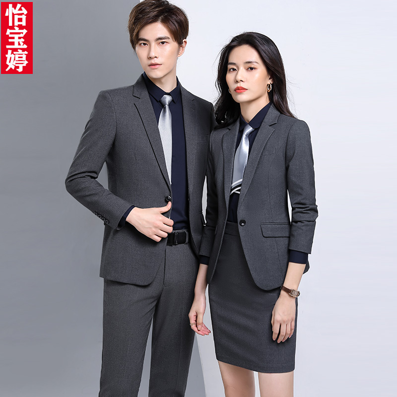 气质OL售楼部工作服4S店销售工装 职业高档浅灰色西服套装 定制修身