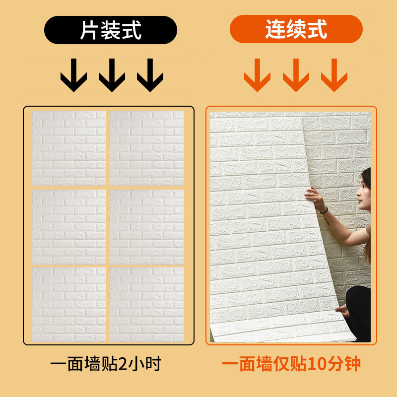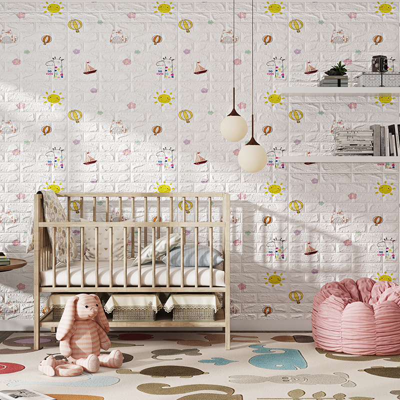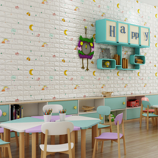 立体自粘墙纸泡沫砖防水防潮卡通儿童房卧室温馨墙贴网红装 饰壁纸