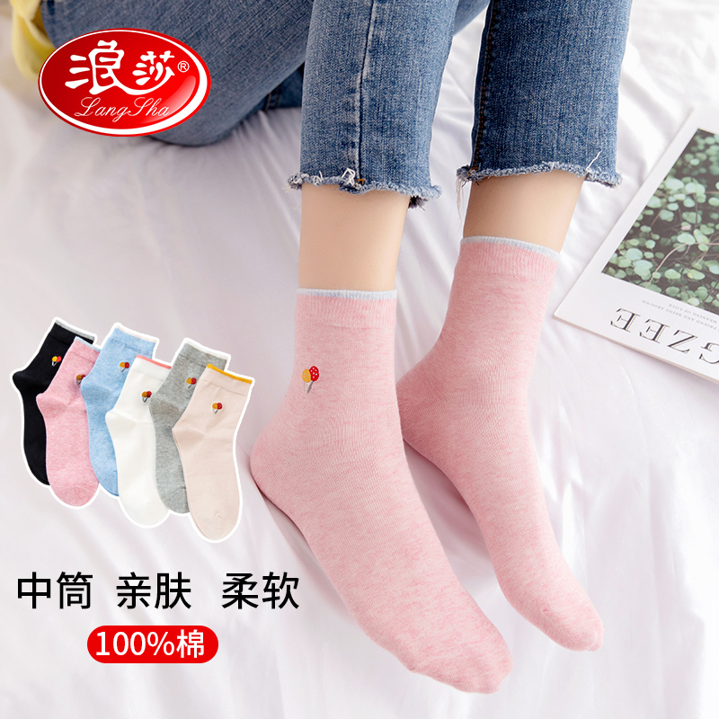 浪莎袜子女纯棉中筒袜秋季 女袜防臭吸汗春秋棉袜全棉甜美学生袜潮