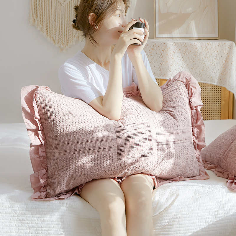 按扣式 轻奢宽边加大厚枕头套家用成人吸汗枕套 纯棉纱布枕套一对装