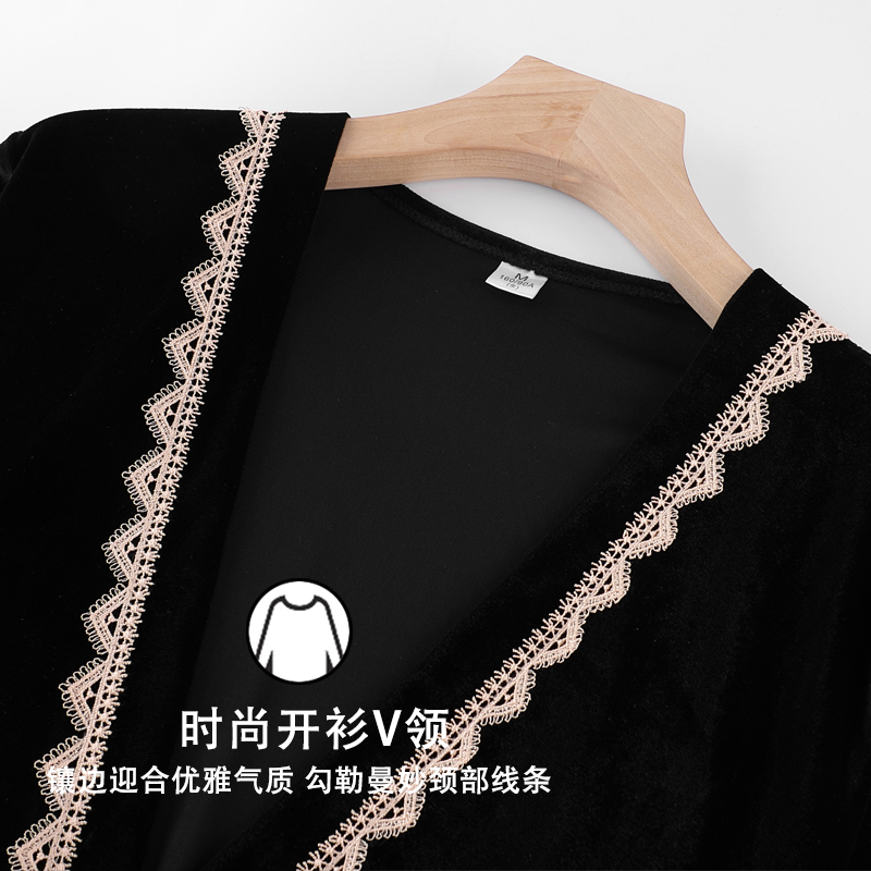 韩版 乐姿梦秋冬季 长袖 金丝绒情侣睡衣女性感三件套男士 家居服 新款