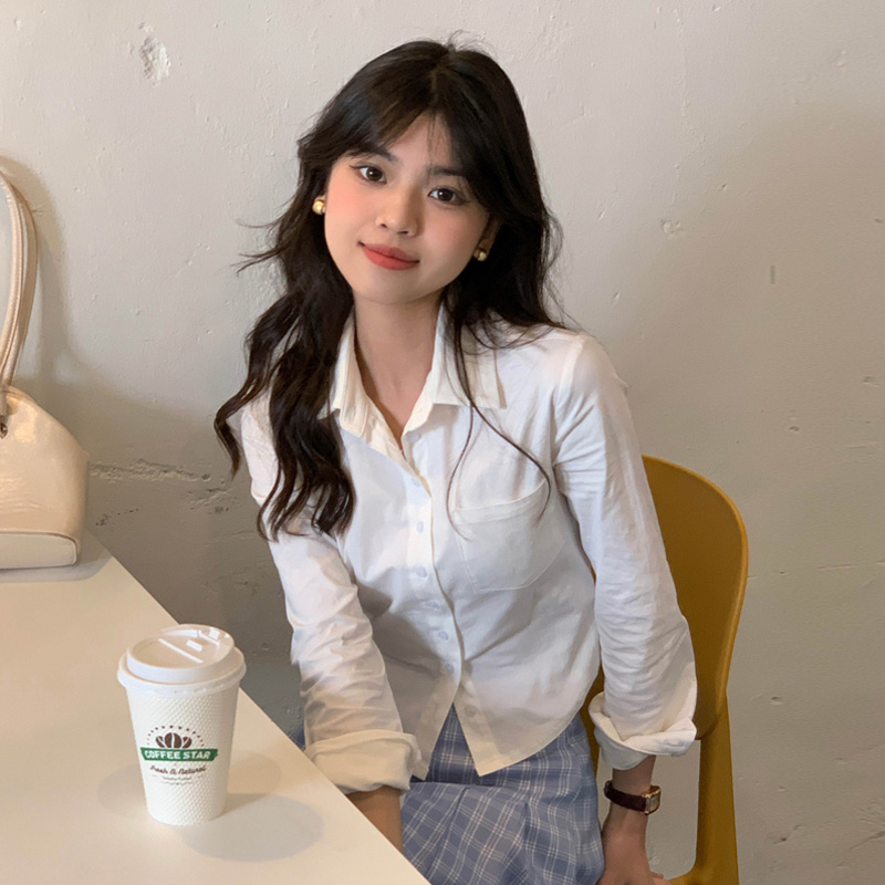 正肩显瘦短款 秋季 修身 外套女长袖 洋气打底纯棉高级感 白色内搭衬衫