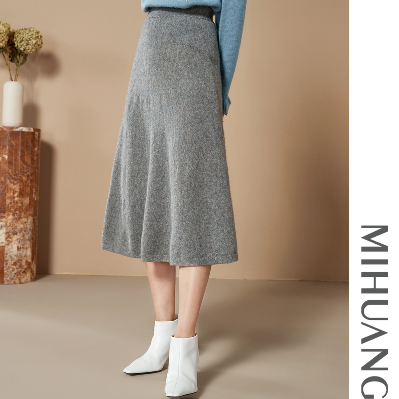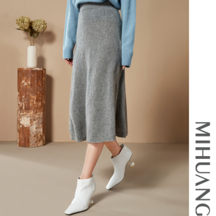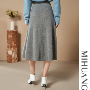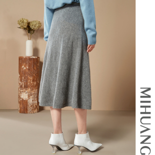 森马半身裙女盐系纯色长裙优雅显瘦冬季 显腿长仿呢遮胯A字裙百搭