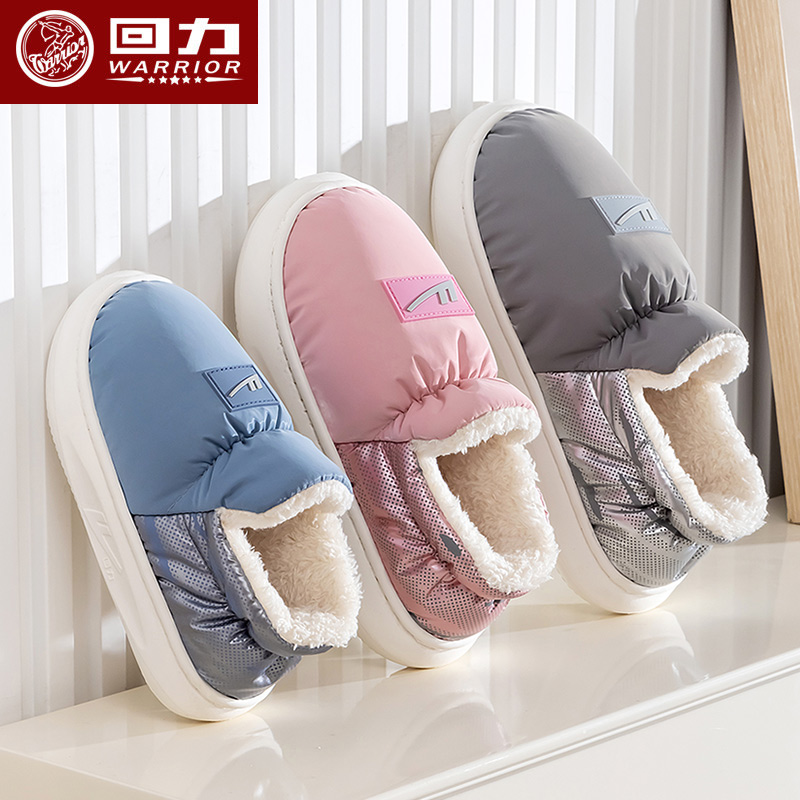 女童 室内保暖防水包头加绒拖鞋 babycrayon原创苹果棉拖鞋 儿童冬季