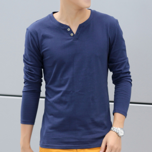 T恤上衣服体恤内搭潮流打底衫 春秋季 长袖 V领纯色宽松纯棉男士 男装