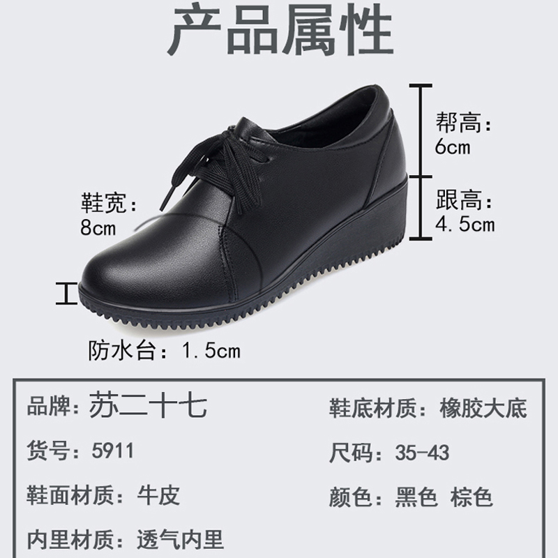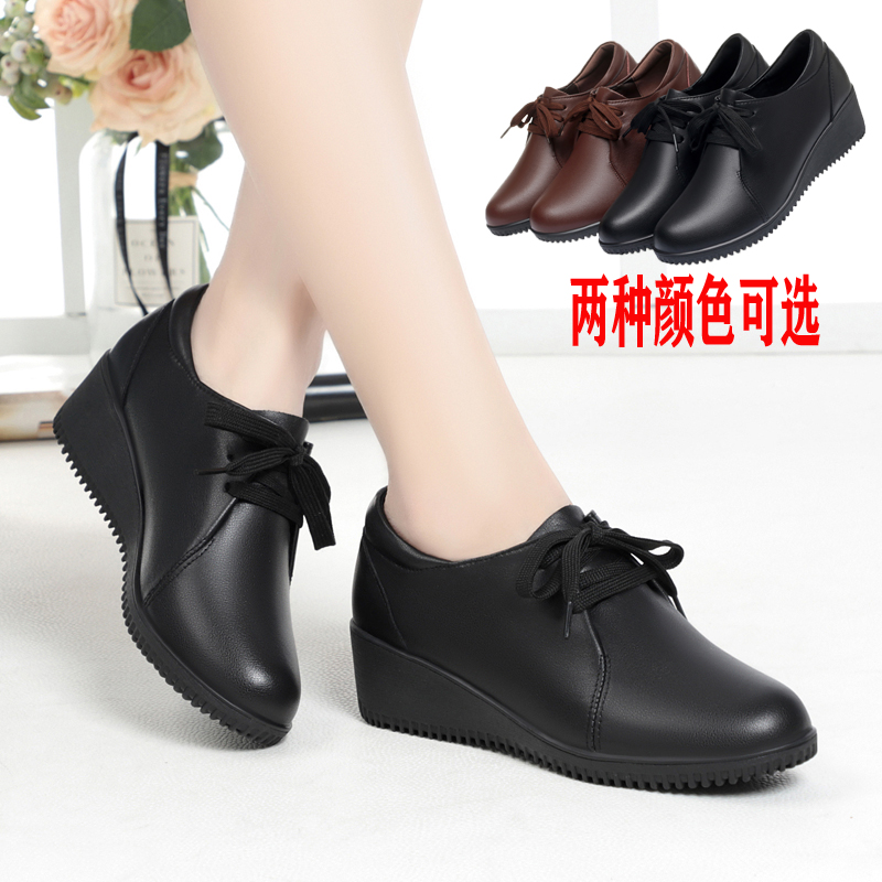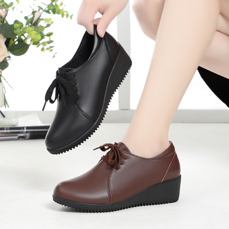 春秋新款 舒适老人鞋 皮鞋 软皮单鞋 女坡跟软底妈妈鞋 中老年真皮女鞋
