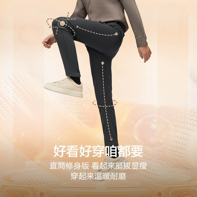 休闲裤 罗蒙男士 2025冬季 新款 直筒西裤 商务工装 加绒免烫四面弹