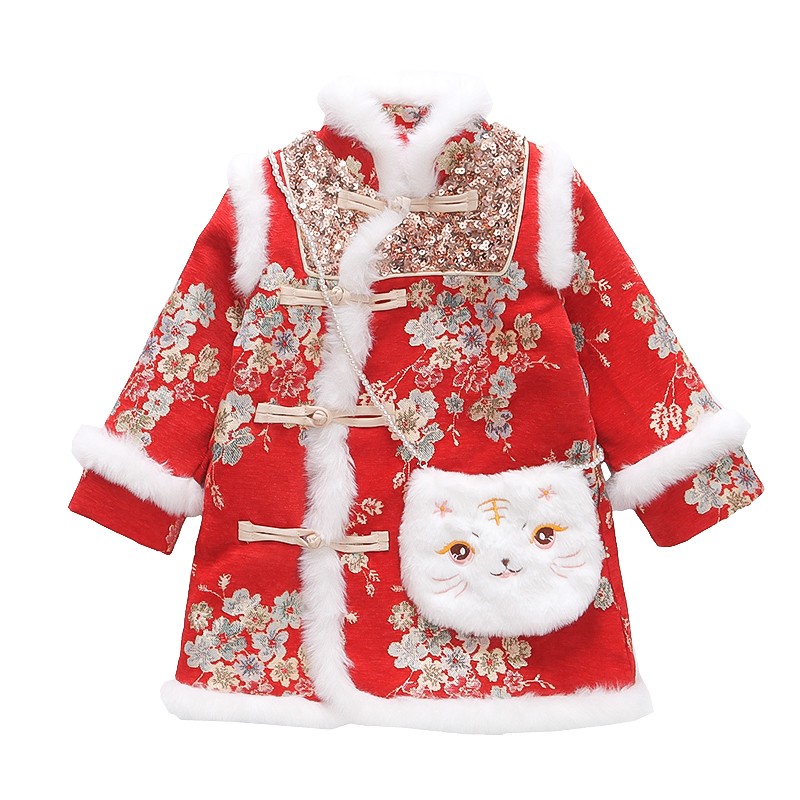 儿童装 2025新款 中国风旗袍女宝宝新年加厚拜年服 汉服冬装 女童唐装