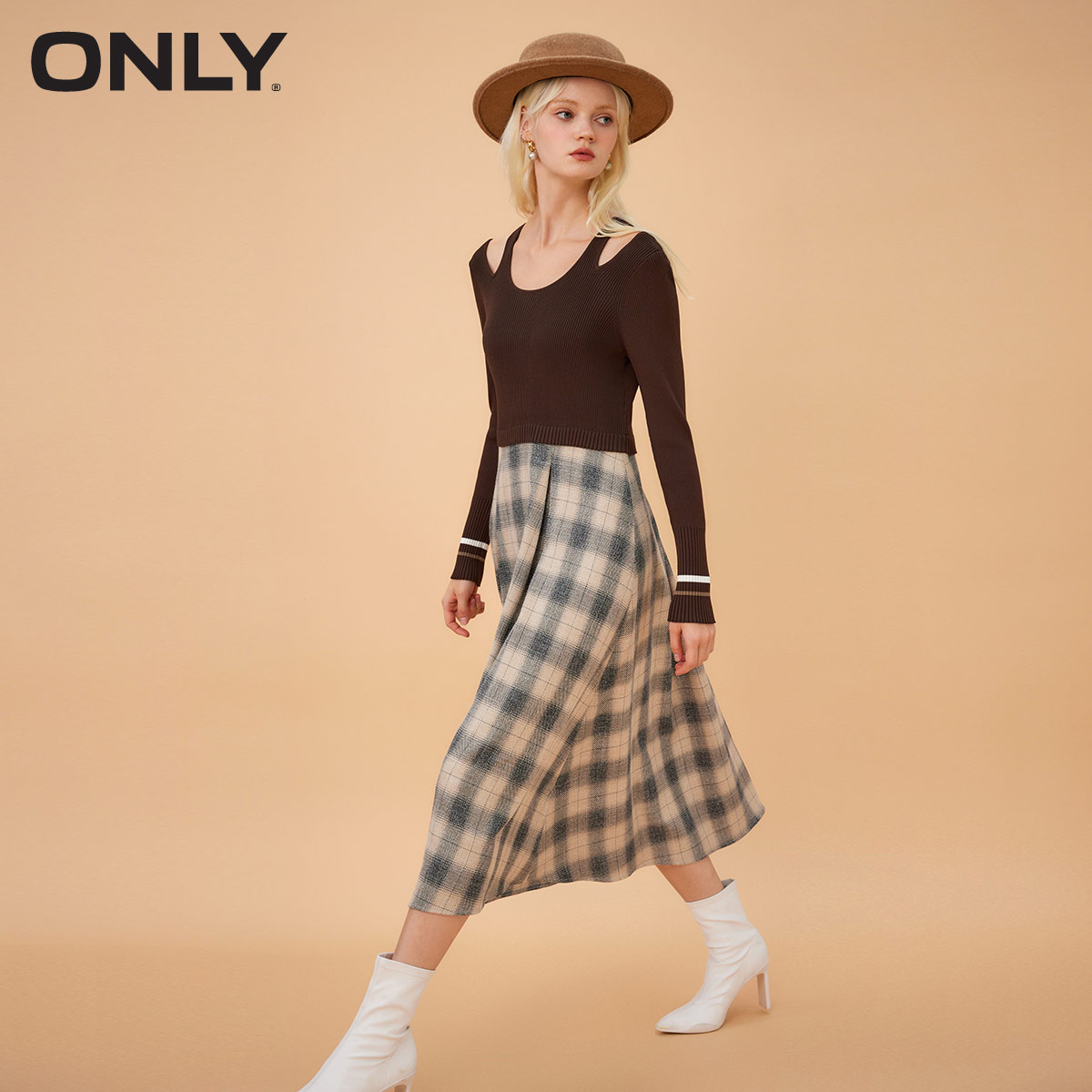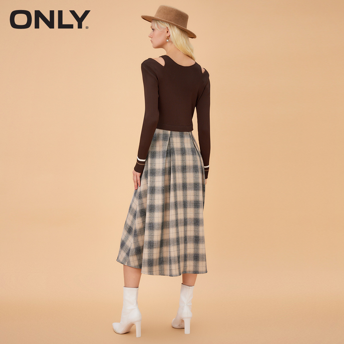 韩系格纹拼接包臀连衣裙 吊带裙2025秋季 KEIKO 高智感一字露肩衬衫