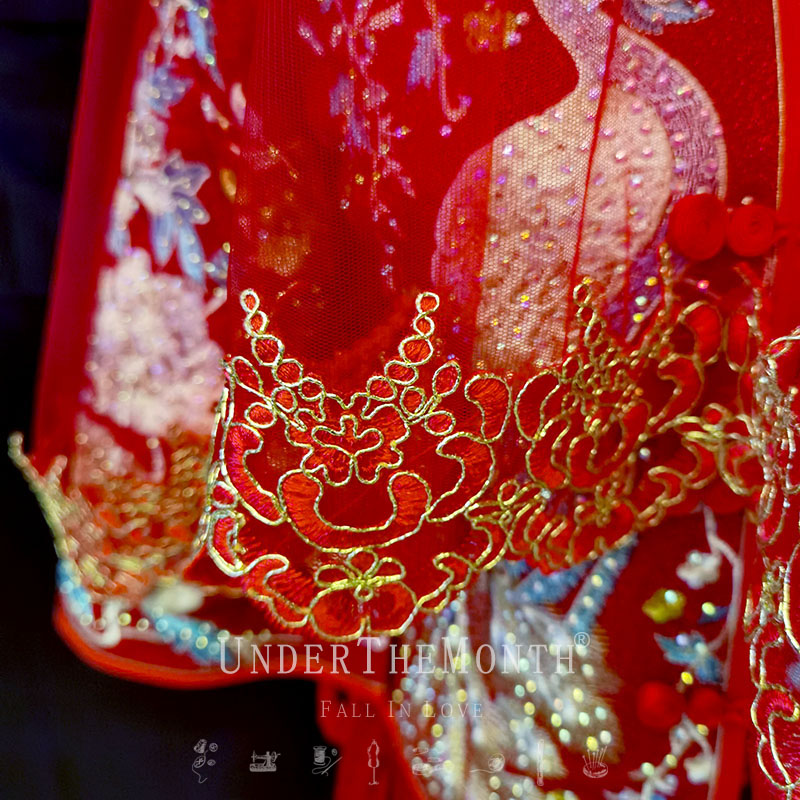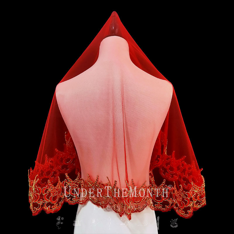 新娘结婚主婚纱头纱中式 婚礼秀禾服红色盖头金色蕾丝红色头纱头饰