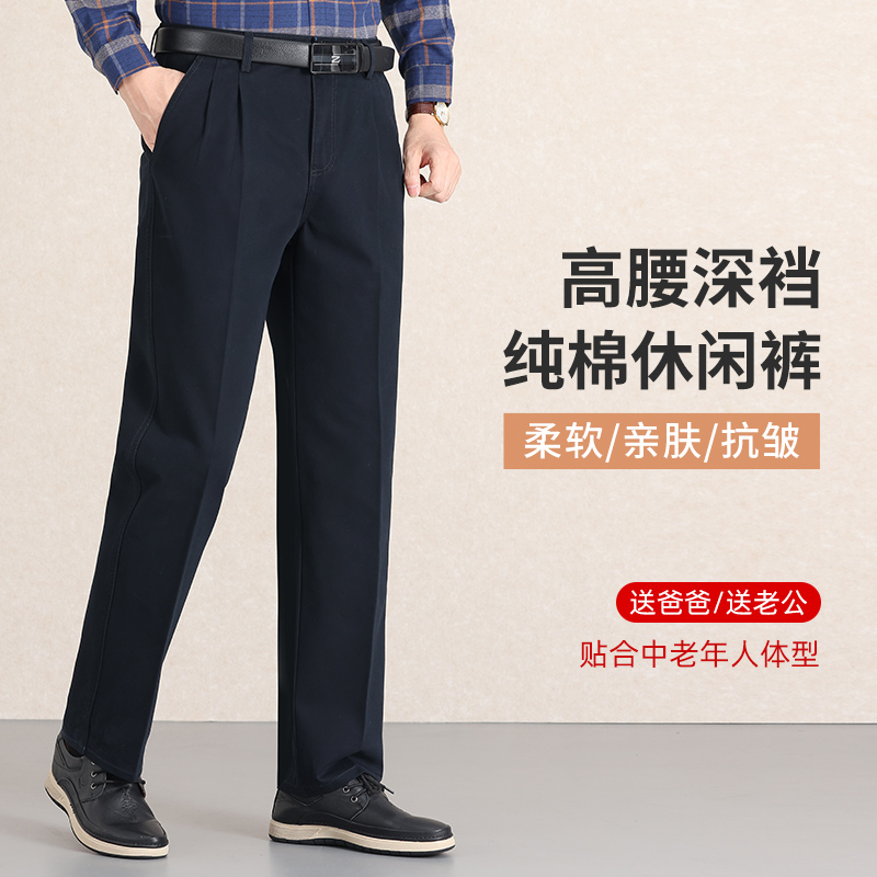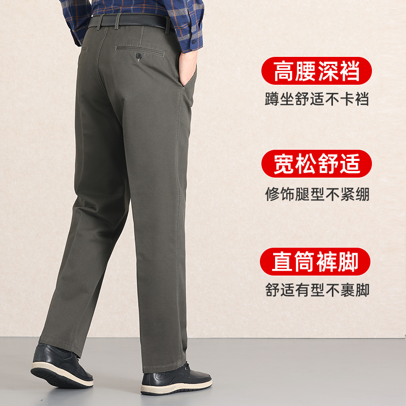 子春秋款 夏款 双褶宽松中老年人纯棉男士 加绒中年男裤 休闲裤 爸爸裤