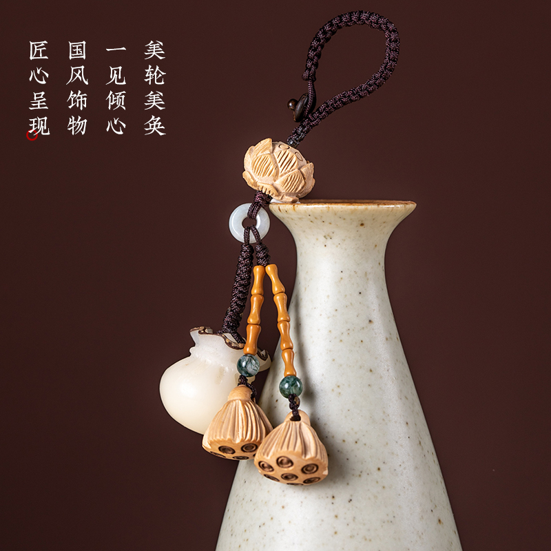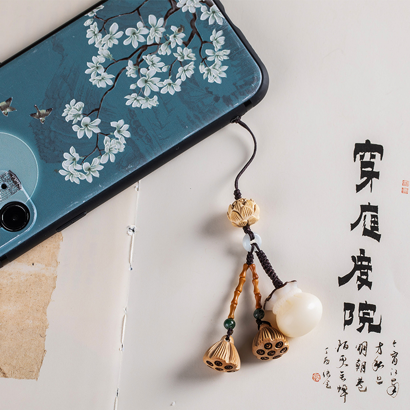 朴房菩提钱袋手机挂绳财源挂件黄杨木莲花汽车钥匙扣精致古风挂饰